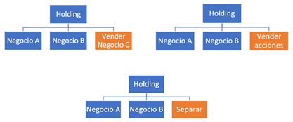 Cuando se aspira a tener una ventaja corporativa las empresas apuestan por una estrategia de diversificación, sin embargo, si no se maneja de la manera adecuada puede frenar el desempeño general de la organización. Igualmente es importante detectar el tiempo adecuado para ir a un proceso de desinversiones. Los ciclos de crecimiento tienden a congelarse con el tiempo, hay variables que naturalmente cambian y las organizaciones están obligadas a reinventarse, para ello es vital mirar al comienzo y buscar nuevas formas de simplificar el modelo operativo. Ver ejemplo de alternativas en la ilustración 2.